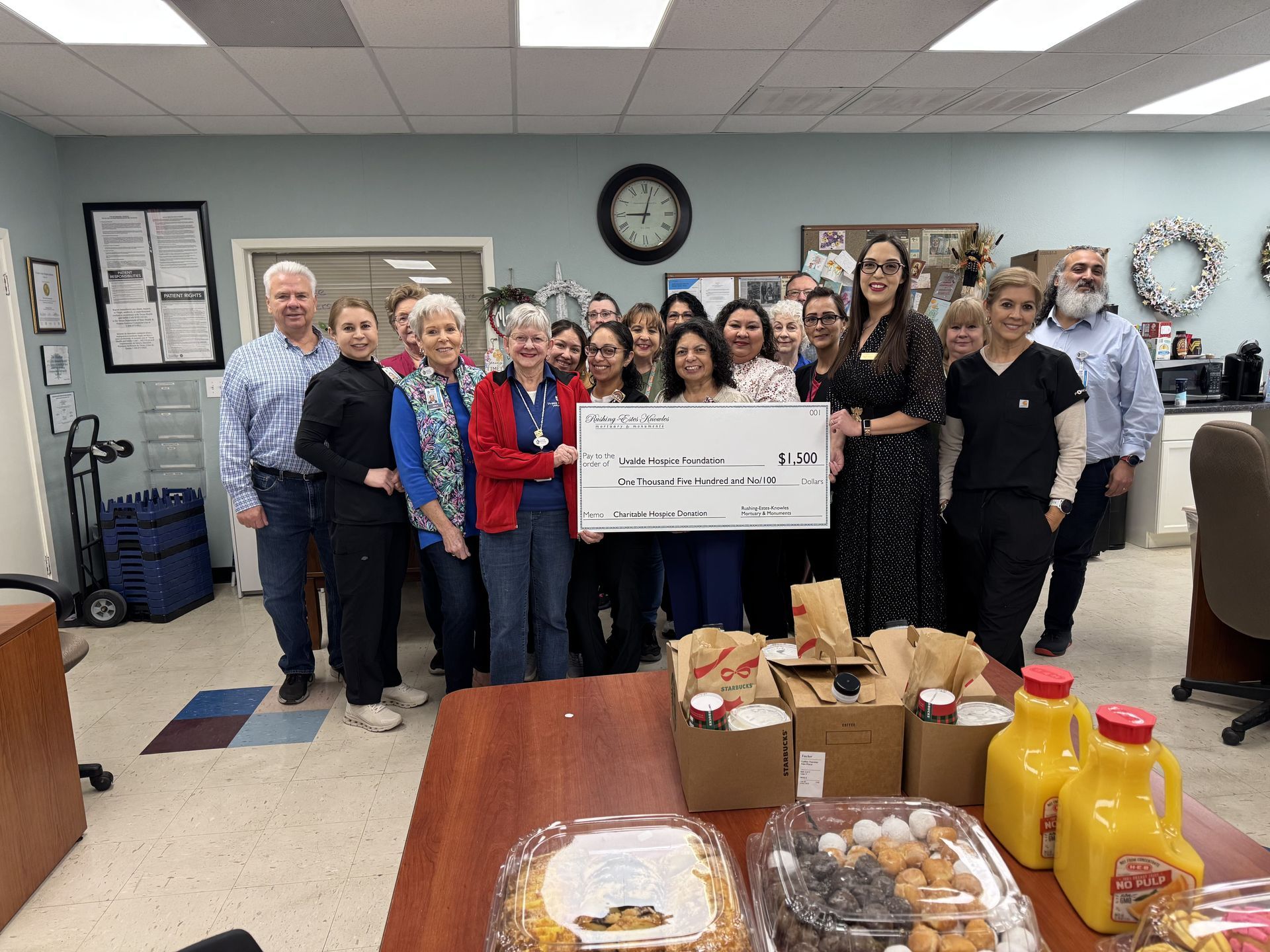 In each community, our locations proudly presented donations to hospice partners who provide compassionate, end-of-life care rooted in comfort, dignity, and peace. These organizations serve patients in their homes, assisted living communities, hospitals, and inpatient centers-ensuring that families receive physical, emotional, and spiritual support when they need it most.